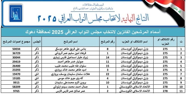 نتائج الانتخابات البرلمانية النهائية في محافظة دهوك