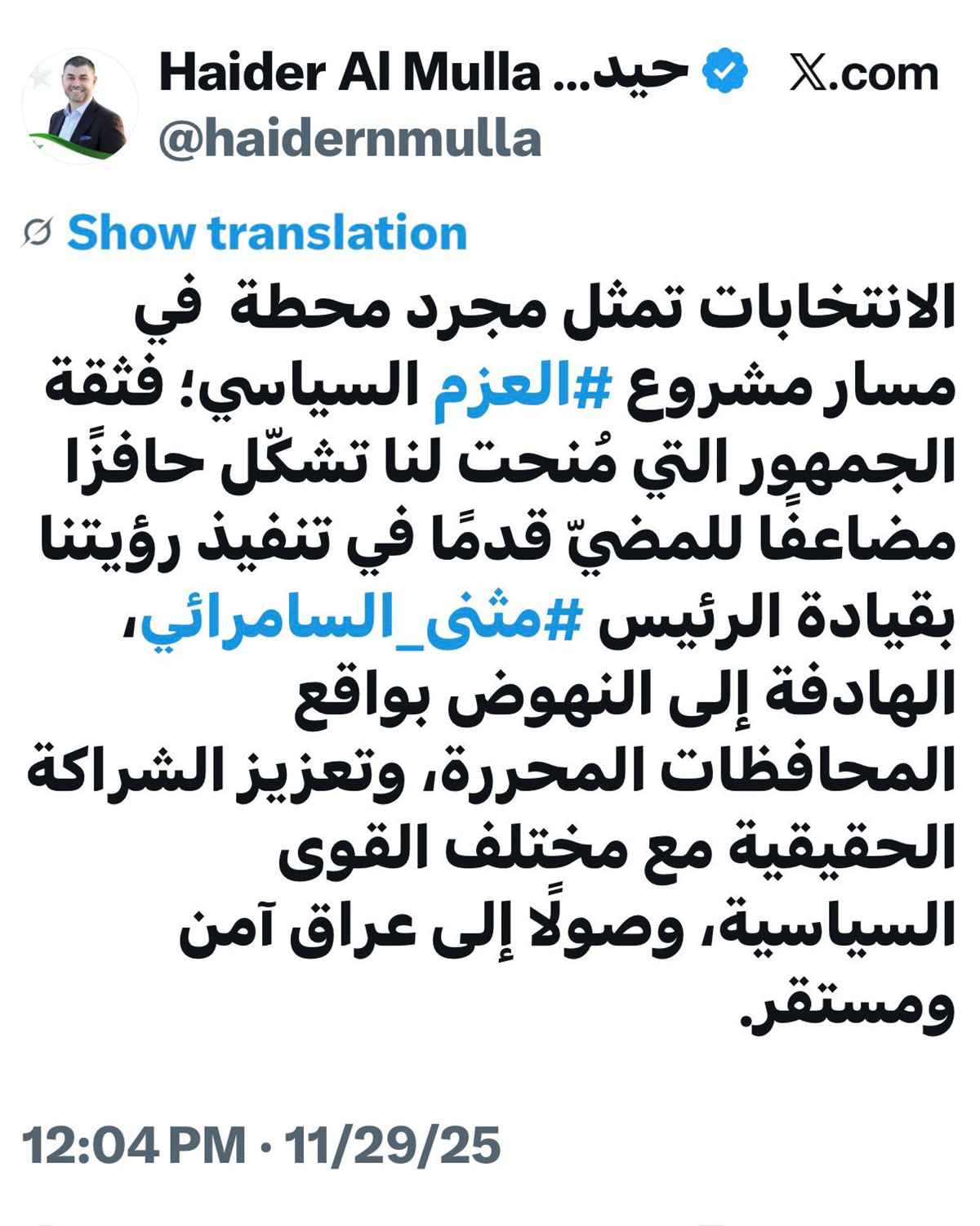 وقال الملا في تدوينة له على منصة "إكس" وتابعتها