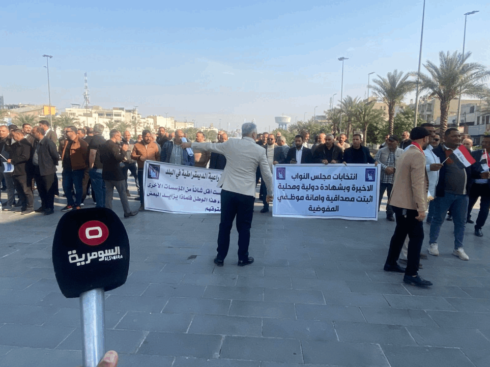 بعد ان سلموا "المقاعد الثمينة" للسياسيين.. موظفو الانتخابات يتظاهرون بحثا عن "وعود المنازل" (صور)