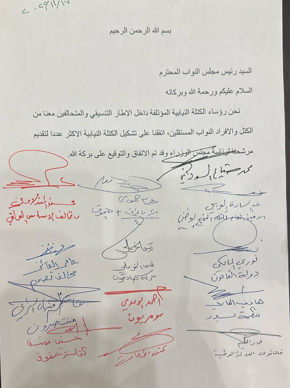 بالوثيقة.. تواقيع الكتلة النيابية الأكبر الجامعة لقوى الإطار التنسيقي