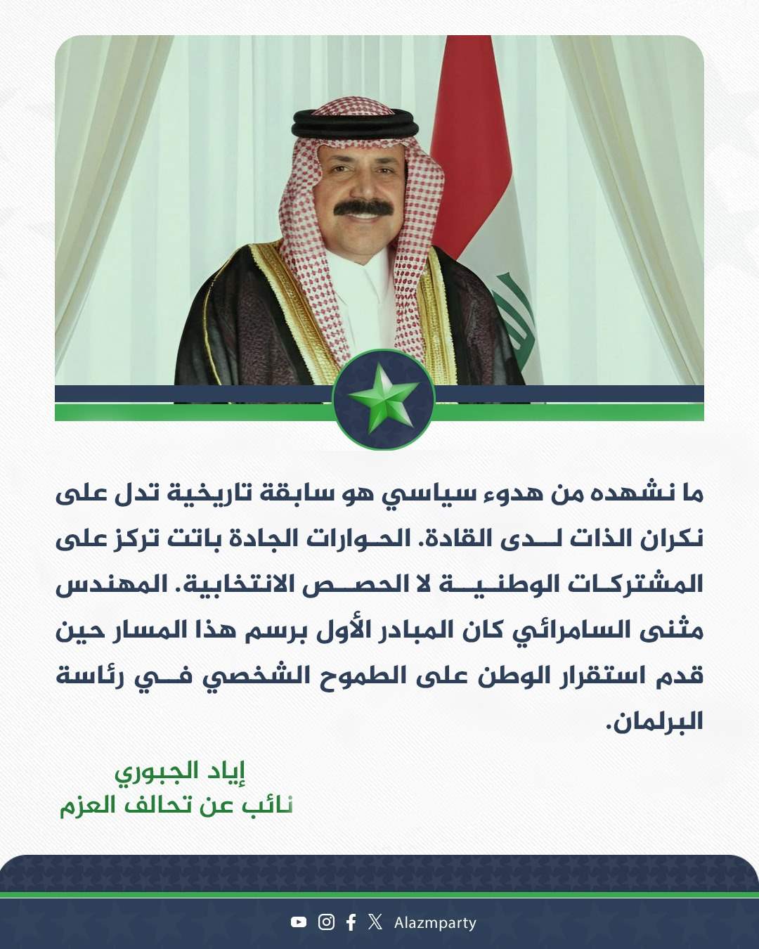 كان المبادر الأول برسم هذا المسار حين قدم استقرار الوطن على الطموح الشخصي في رئاسة البرلمان".