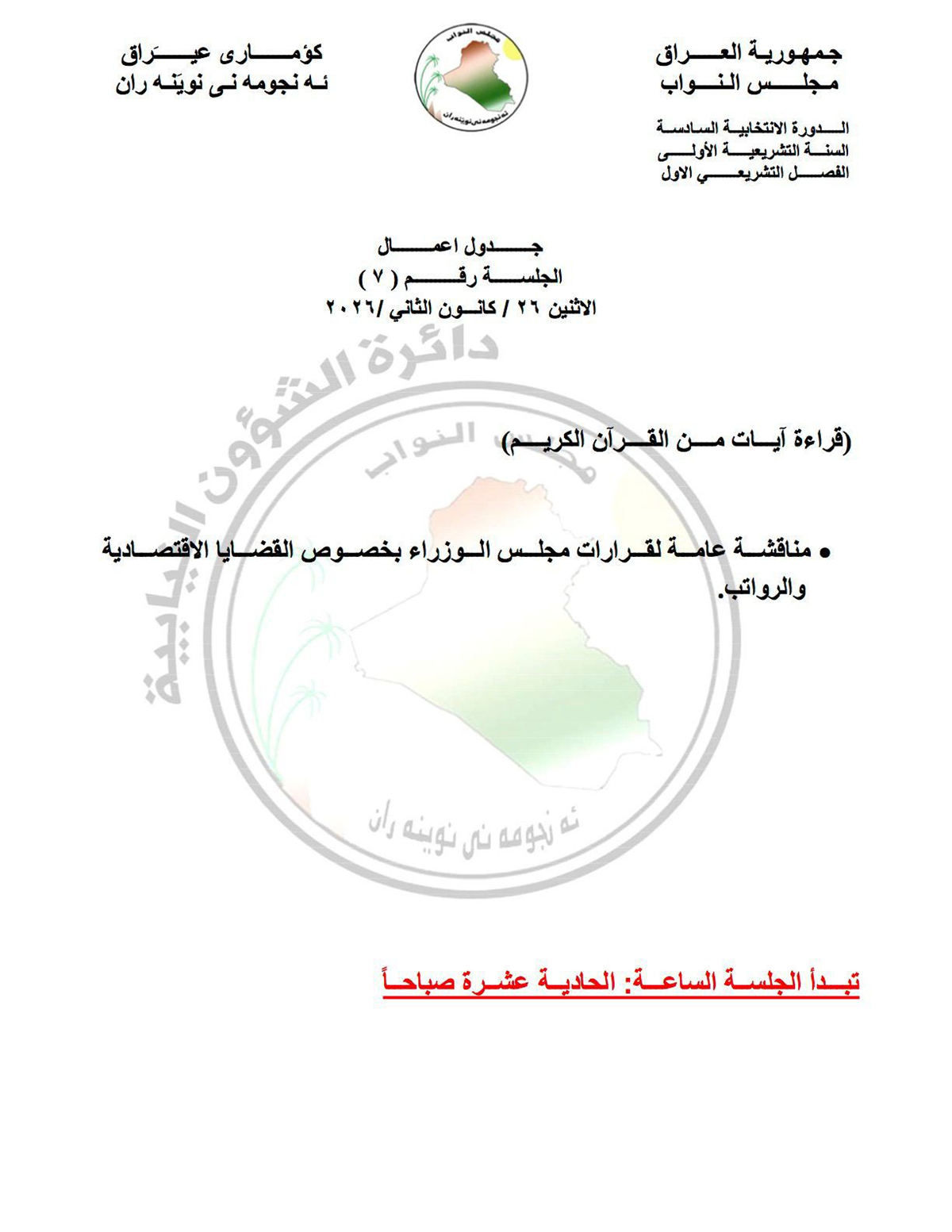 يعقد يوم غد الاثنين جلسته السابعة؛ لمناقشة
