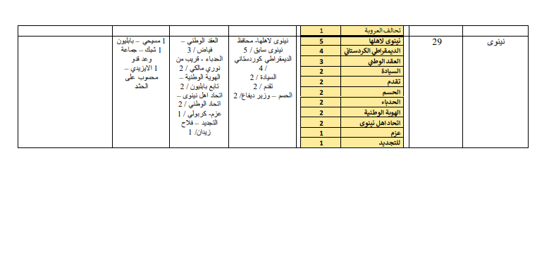 ، والديمقراطي الكردستاني والسيادة وتقدم والحسم، بعدد مقاعد يبلغ 15 مقعدا من اصل 29 مقعدا، اما باقي الكتل ستكون في المعارضة.