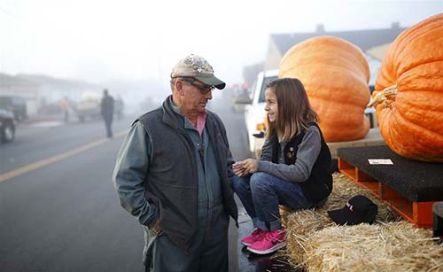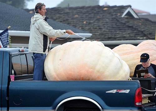 وفي الصور أدناه يقف المزارعون بالقرب من منتجاتهم الضخمة أو تقوم لجنة الحكم بقياس حجم اليقطين أو وزنها. وتجدر الإشارة إلى أن
