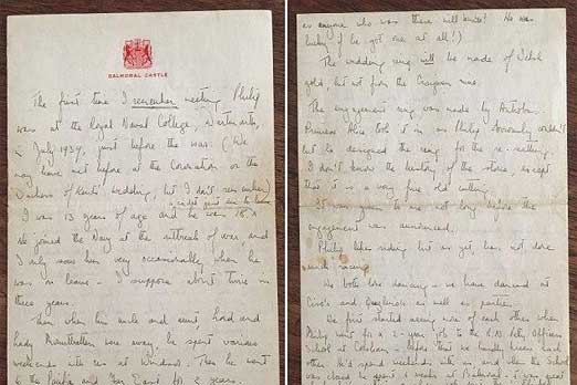 واستخدمت الملكة في الرسالة التي كتبتها وهي في عمر الـ21 ورقة مزينة بالشارة الملكية، وتحدثت فيها عن المراحل الأولى من علاقتها بالأمير واللقاءات النادرة التي جمعتهما خلال الحرب، ومنها حفل راقص جمعهما معاً في