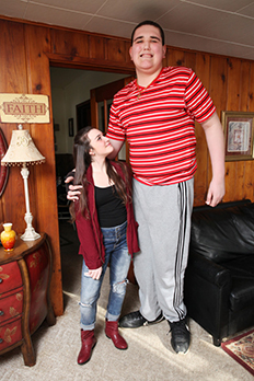 وتقول والدته إنه عندما كان في رياض الأطفال، كان طوله 5 أقدام و2 بوصة، وكان هذا يتطلب أحذية وملابس خاصة لطفل يبدو عملاقا وسط زملائه، كذلك كان لابد من توفير سرير خاص له.