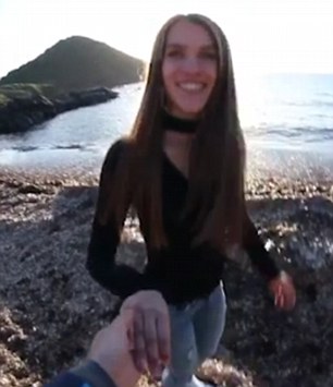 ظهرت الفتاة في لقطة الفيديو التي صوّرها الشاب، وهي تمسك بيد حبيبها ويمشيان على حافة صخرة عالية مطلة على البحر في لحظة رومنسية، ثم تستدير نحوه وتبتسم له.