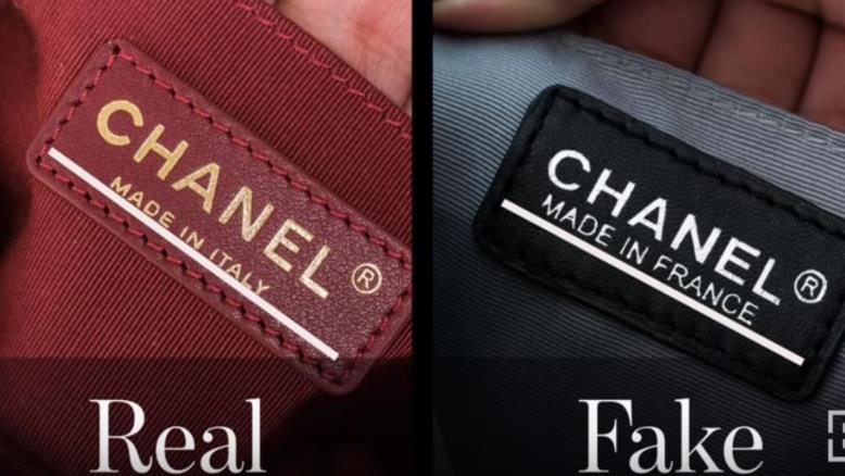 على اليمين حقيبة مزيفة تحمل كتابة متقطعة بينما الحقيبة الأصلية على اليسار (مواقع التواصل)