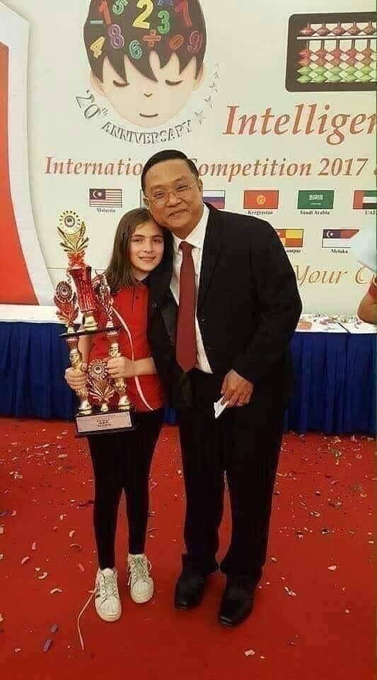 (12 عاما)، على لقب "أذكى طفل في العالم"، وذلك بعد إحرازها المركز الأول في مسابقة الرياضيات العقلية المقامة في العاصمة الماليزية، كوالالمبور.