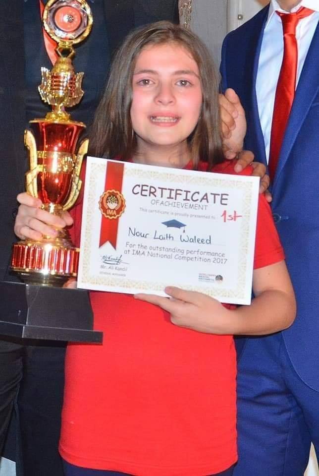 وتمكنت نور، وهي تلميذة في الصف السادس، من حل 235 مسألة رياضية خلال 8 دقائق، حيث حصلت قبل اشتراكها بالمسابقة على المركز الأول في الرياضيات العقلية في المسابقة التي أُقيمت في