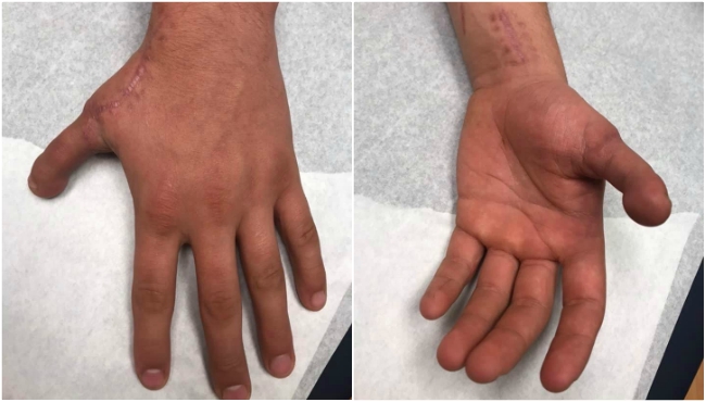 فقد رجل إبهام يده أثناء عمله في ورشة نجارة فوجد أطباء بديلاً له عن طريق عمل جراحي، في ولاية ميشيغان الأمريكية.