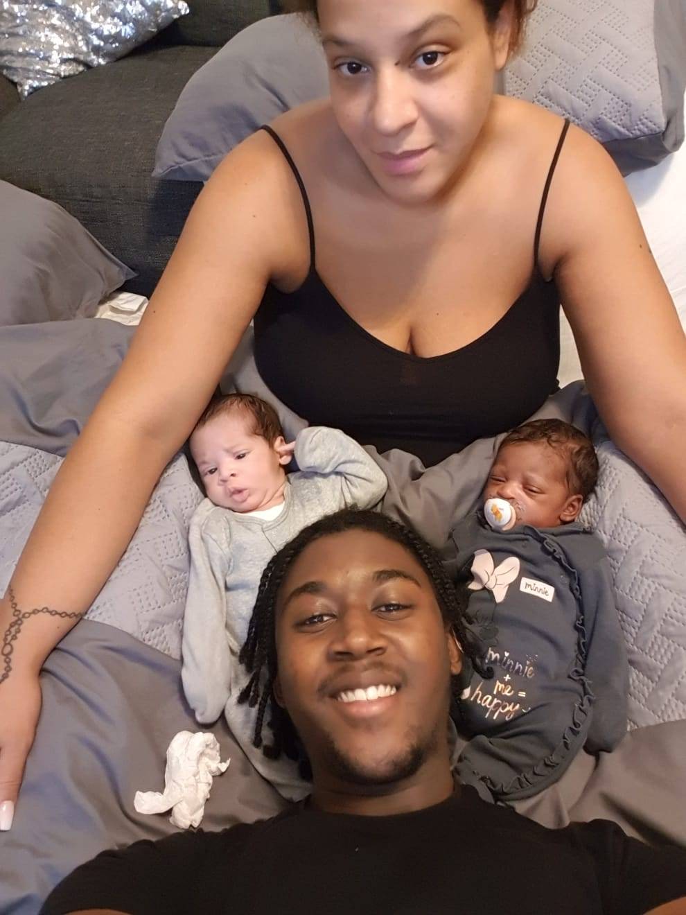 فوجئت سيدة بريطانية بوضع طفلين توأم، يحمل كل منهما لون بشرة مختلف عن الآخر.