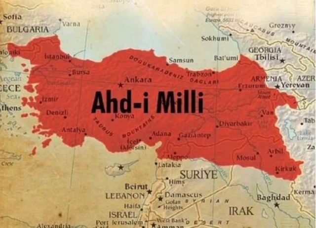 وأرمينيا، مذكرةً بالقسم الوطني (ملي ميساك) وهو اتفاق مختوم من قبل البرلمان العثماني يرجع لعام 1920، يدعي أن هذه الأراضي أجزاء من تركيا.