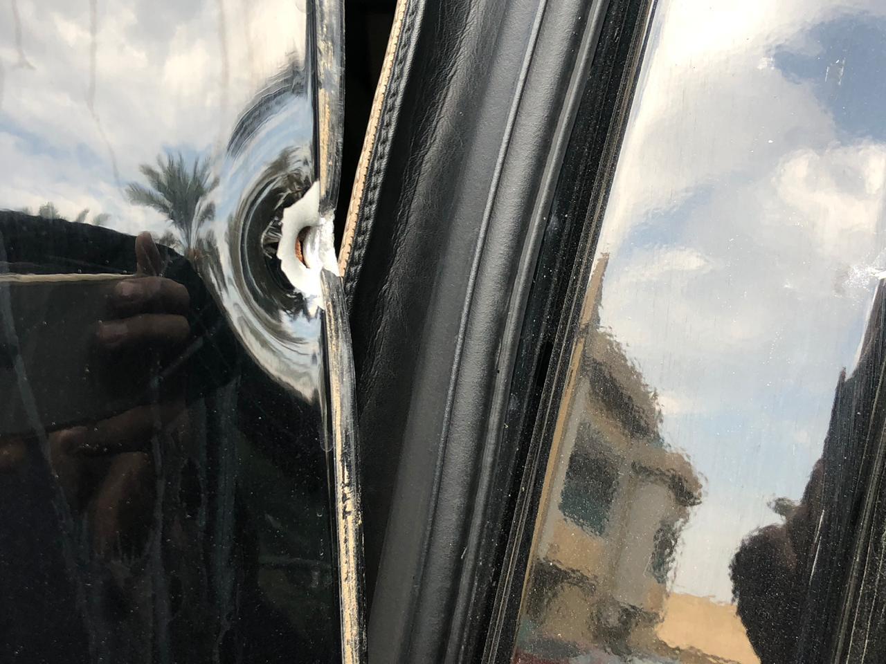 وحصلت السومرية نيوز، على صور تظهر اثار ضرر لحق بالسيارة الخاصة بالمسعودي نتيجة طلقات نارية، فيما استقرت احدى الطلقات على جزء من السيارة.