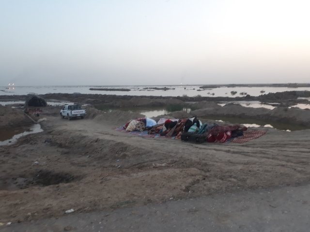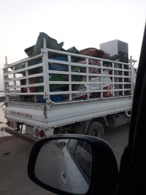 ، صوراً لاخلاء عوائل بعد ارتفاع مناسيب المياه في ناحية المشرح شرق ميسان.