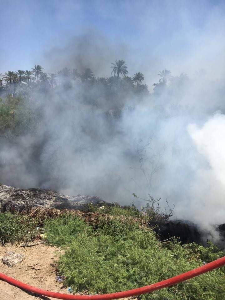 مركز دفاع مدني ثورة العشرين يتمكنون من اخماد حادث حريق نشب داخل احد البساتين الواقعة في منطقة الشرقية في السماوة".
