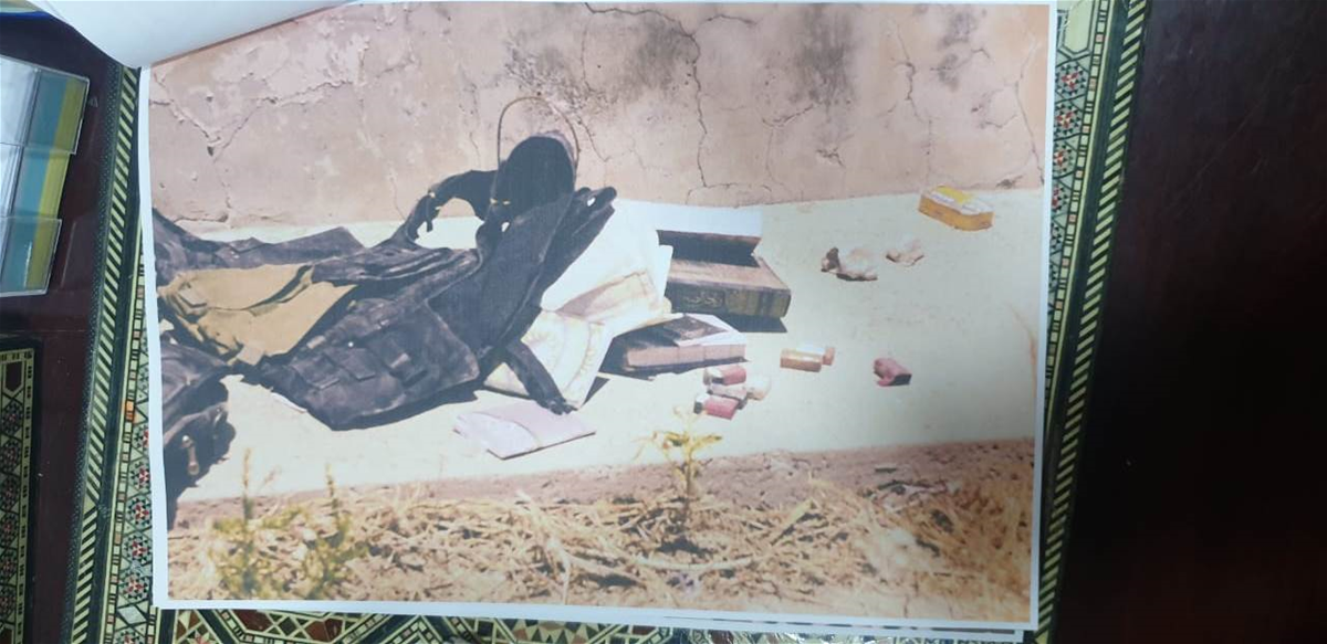 ، ٨ مساطر تفجير ، ٢ موبايل ، بالإضافة الى معمل لتصنيع العبوات ، ومفكرة تضم أسماء