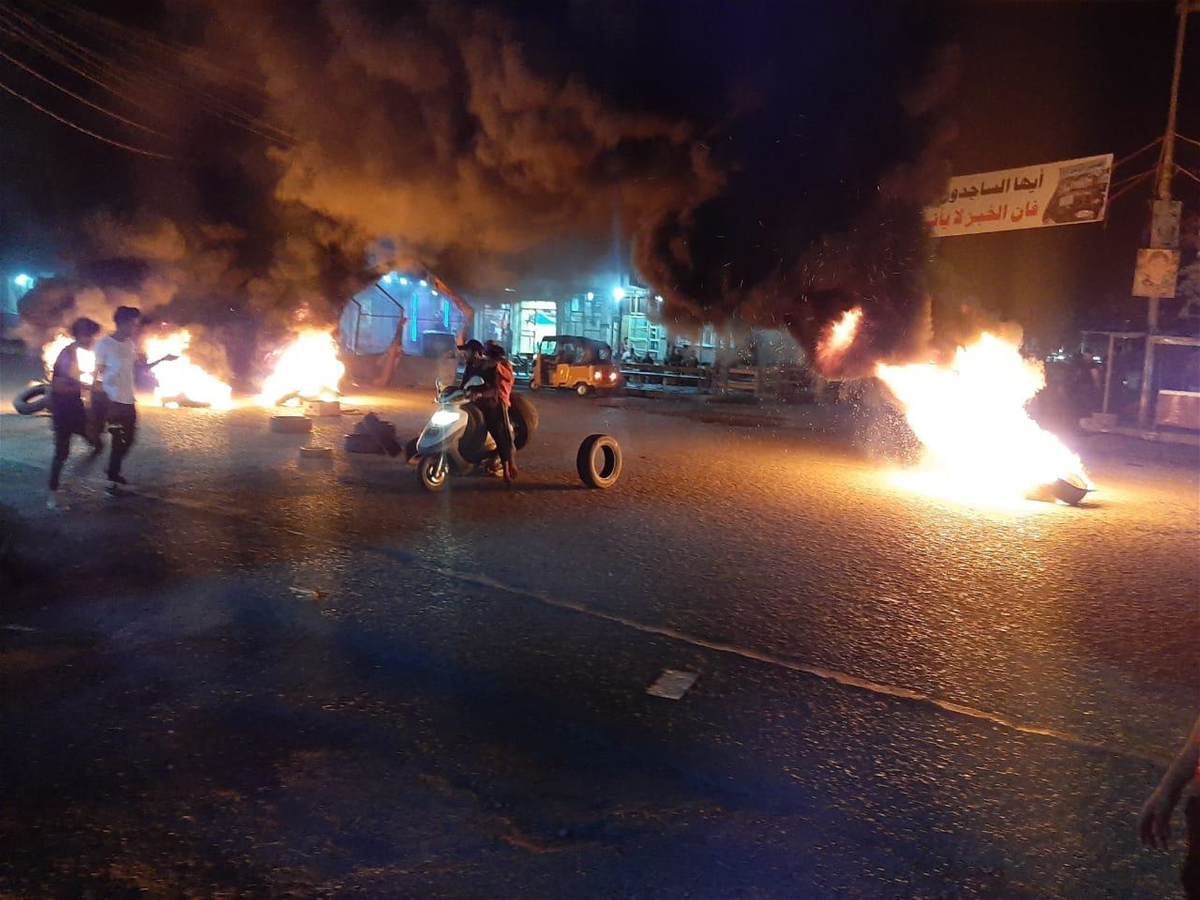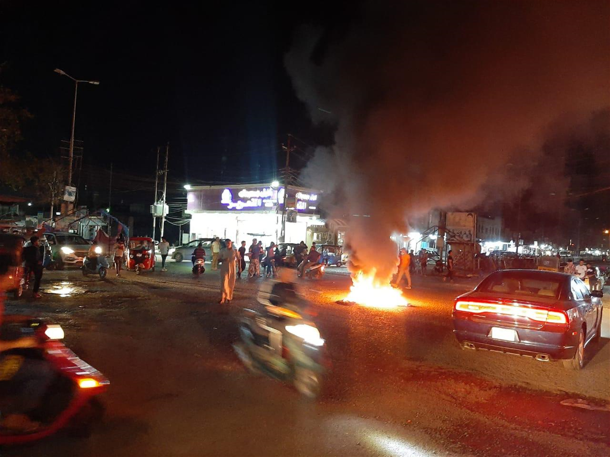 وقال مصدر امني إن "العشرات من المحتجين اغلقوا مساء اليوم الاحد، عدداً من شوارع قضاء