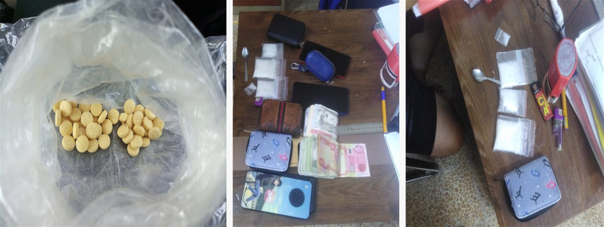 نتج عنها: القاء القبض على (9) متهمين وفق مواد قانونية مختلفة ومصادرة (5) سلاح مسدس غير مرخص وإطلاقات عتاد مختلفة، ومخازن فارغة مع (72) حبة مخدرة مختلفة الأنواع و(26) غم من مادة الكريستال وأجهزة للتعاطي".