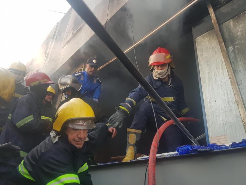 الدفاع المدني يخمد حريقا اندلع في بناية مكونة من طابقين في الوزيرية ببغداد