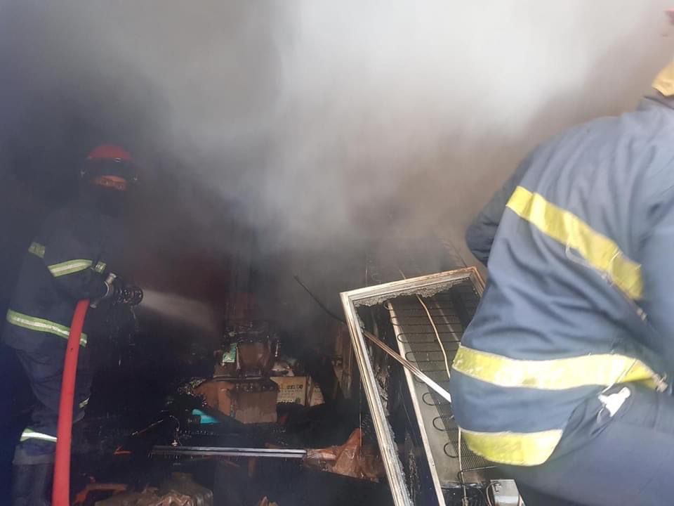 أخمدت حادث حريق اندلع بمطعم حلب ولوز لتمتد النيران وتلتهم الطابق الثاني من نفس البناية ومخزن لمحل مثلجات