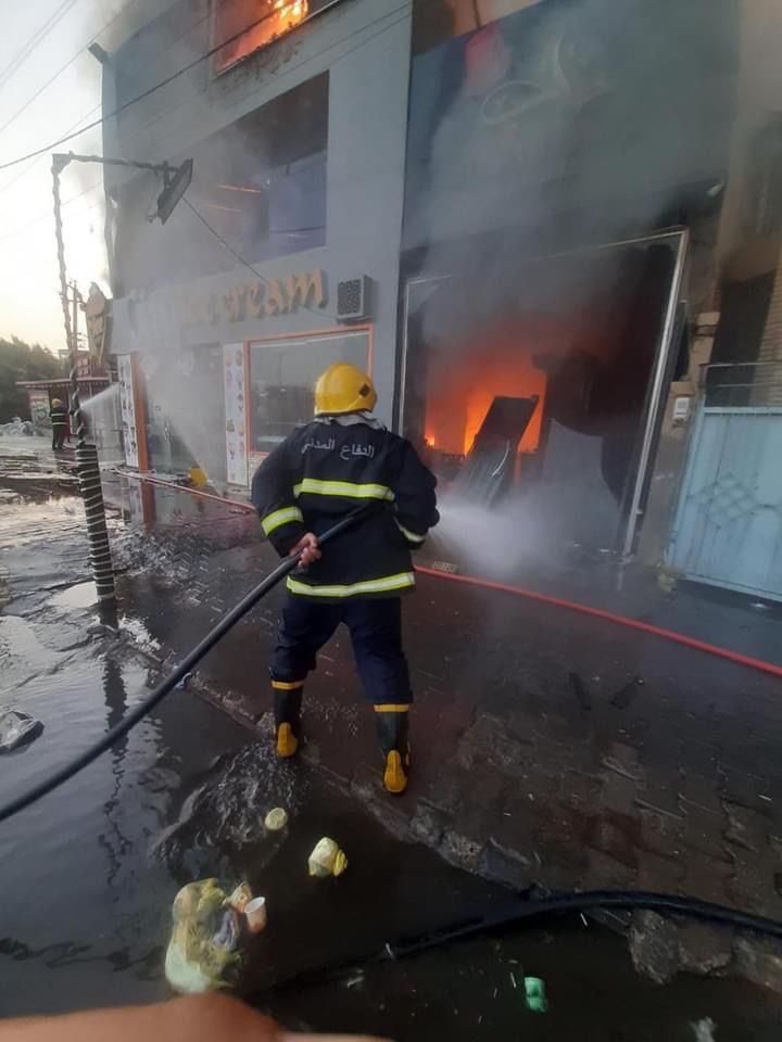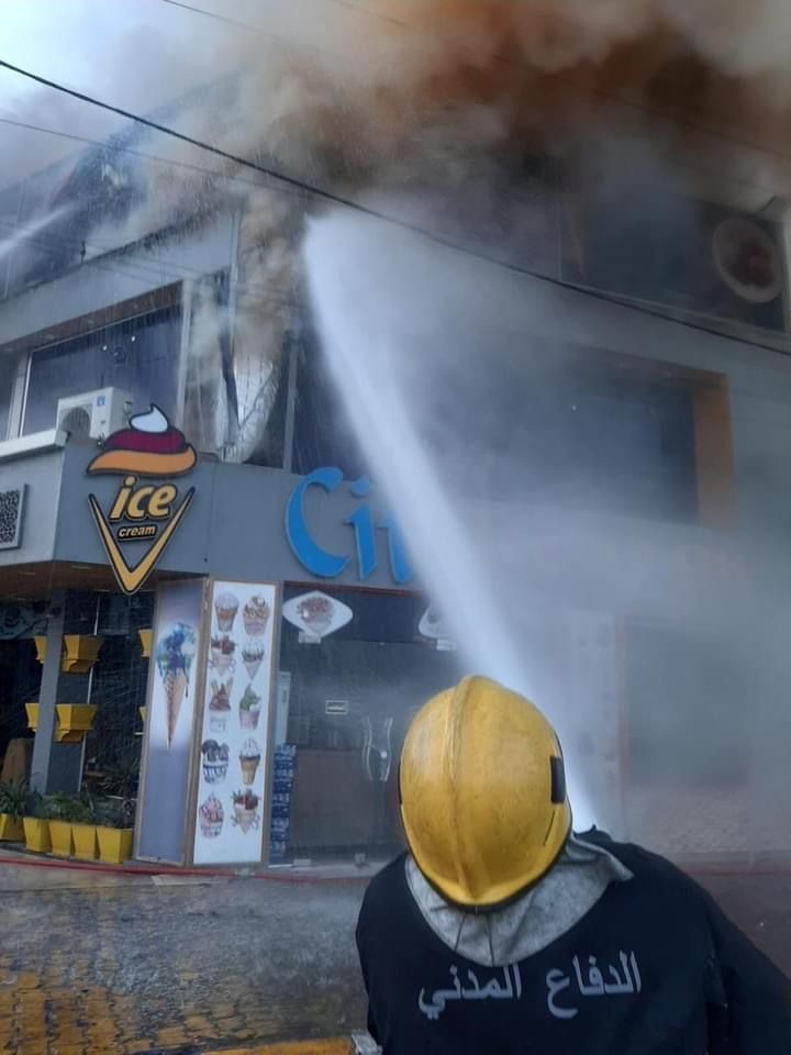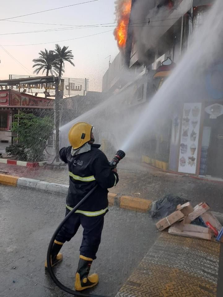 اخماد حريق اندلع داخل مطعم في الكاظمية (صور)