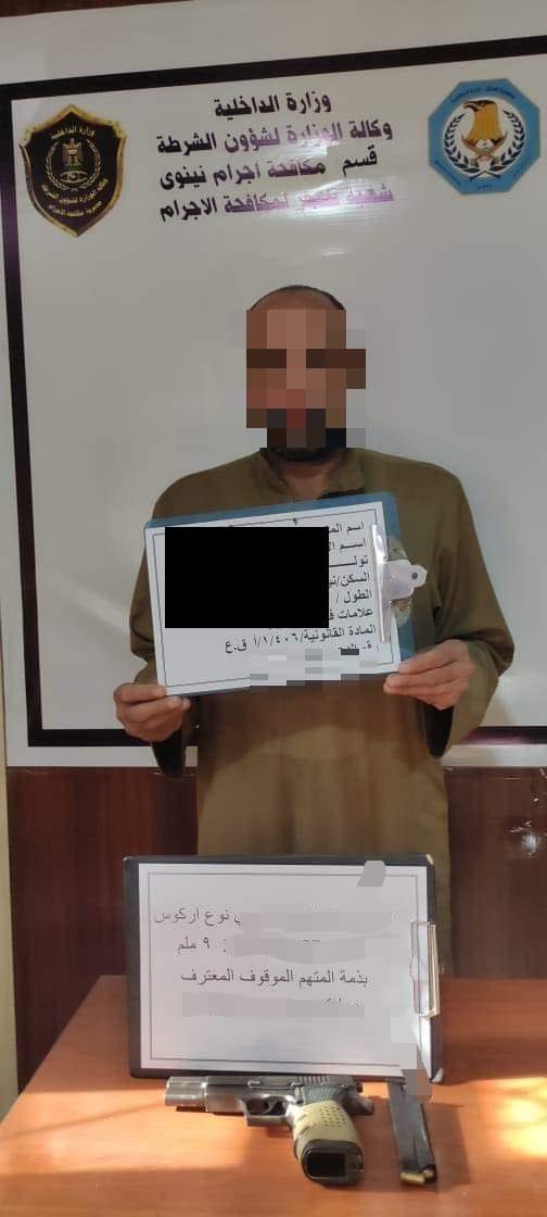 وتابع، أن "المتهم تم القبض عليه في (قضاء تلعفر) غربي مدينة