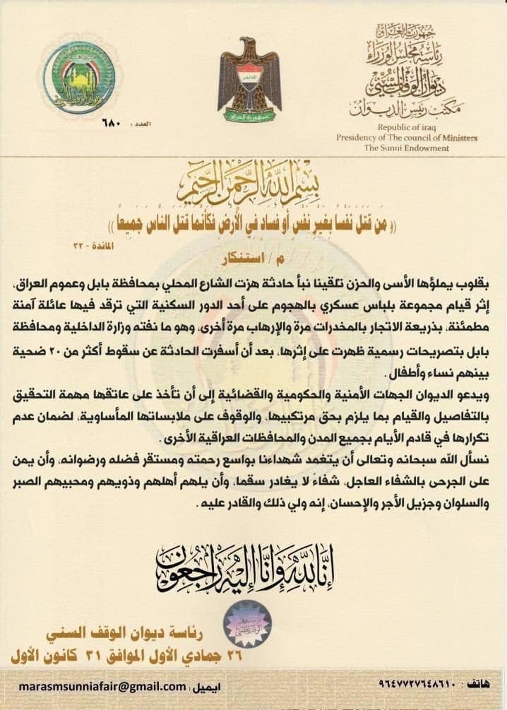 الوقف السني يوجه طلبا للشاعر علي نعيم الدراجي لإخلاء الدار المستأجرة له