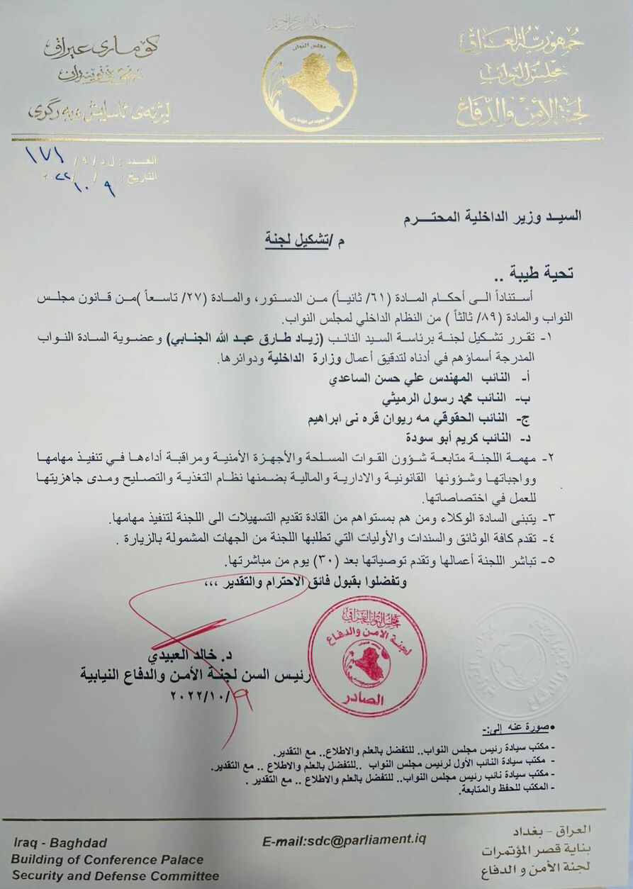 برئاسة الجنابي.. تشكيل لجنة نيابية لتدقيق اعمال وزارة الداخلية والأجهزة الأمنية