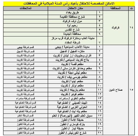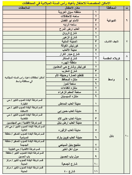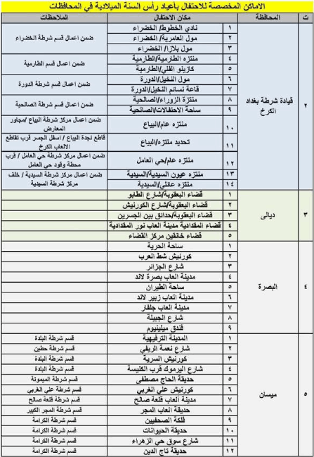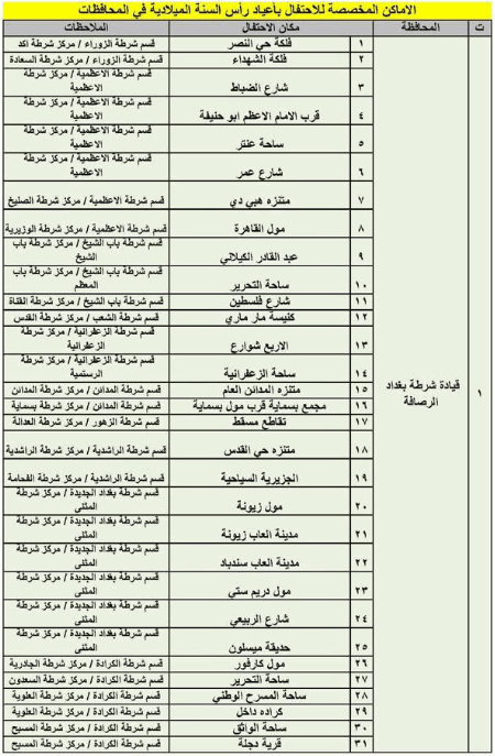 تحديد أماكن للاحتفال براس السنة في بغداد والمحافظات
