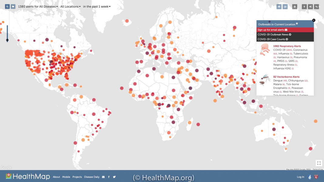 تم إطلاق تطبيق الخريطة الصحية (HealthMap)، وهو تطبيق للذكاء الاصطناعي يديره مستشفى