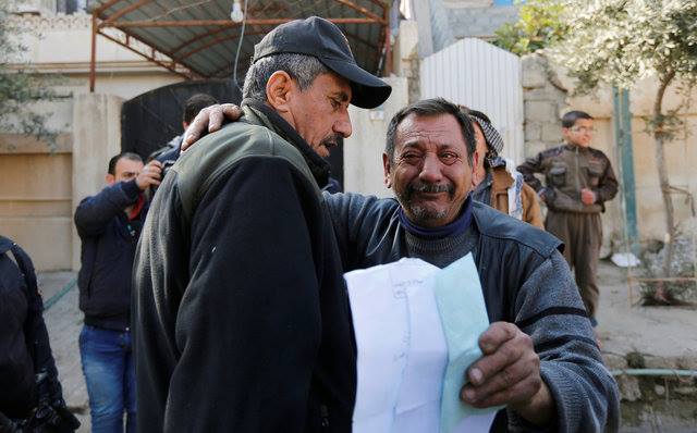 بالصور .. رجل أبيدت عائلته بيد داعش يجهش بالبكاء بأحضان قائد محرر