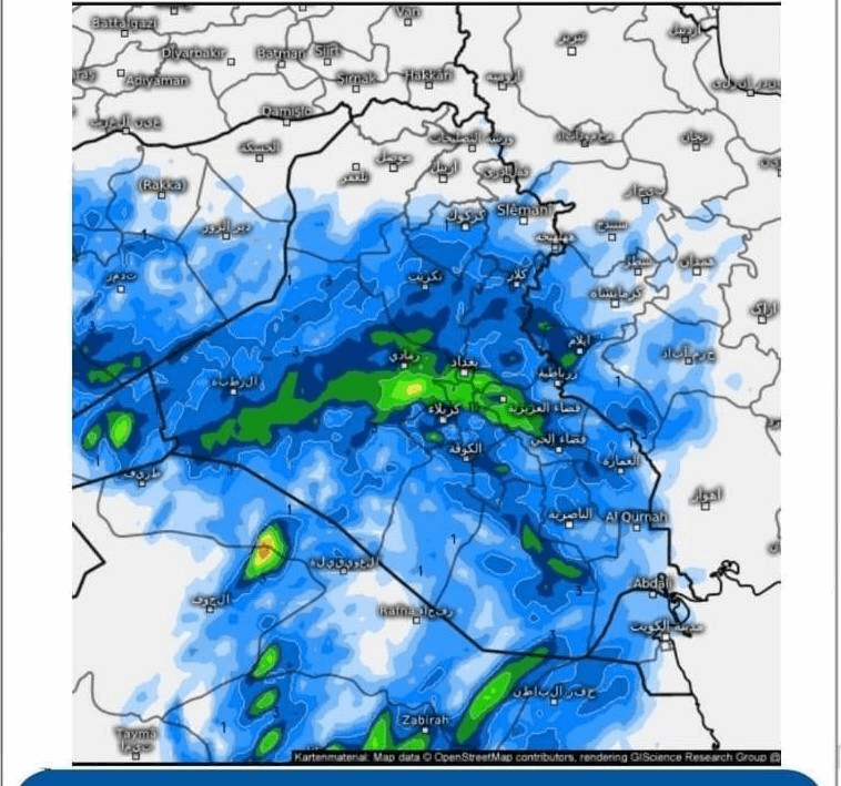 وبغداد وواسط لها النصيب الاكبر من هذه الامطار.